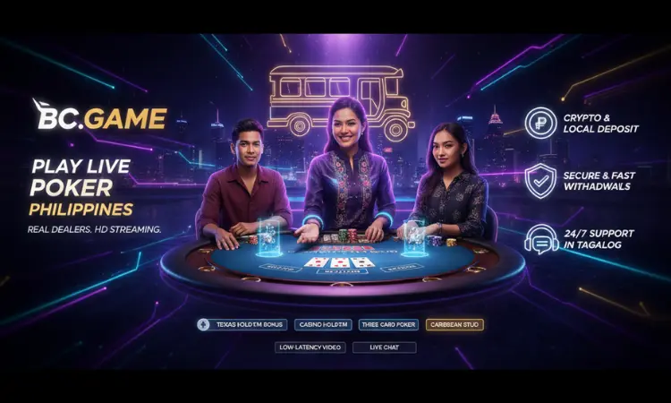 BC.Game hosts real-time poker with professional dealers. Streams are stable and crisp. Tables open around the clock. Bets are displayed clearly in PHP equivalents. Registration is quick. Verification is straightforward. Bankroll tools are available. Support answers in English and Tagalog. Mobile play runs smoothly on iOS and Android.