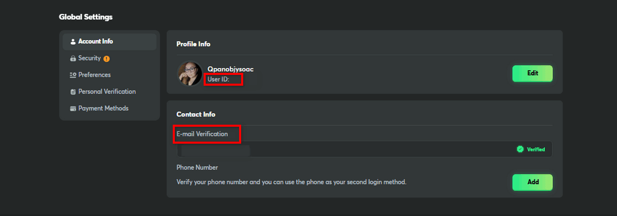 - User ID. Your unique identifier within BC.Game is set at registration and cannot be modified.